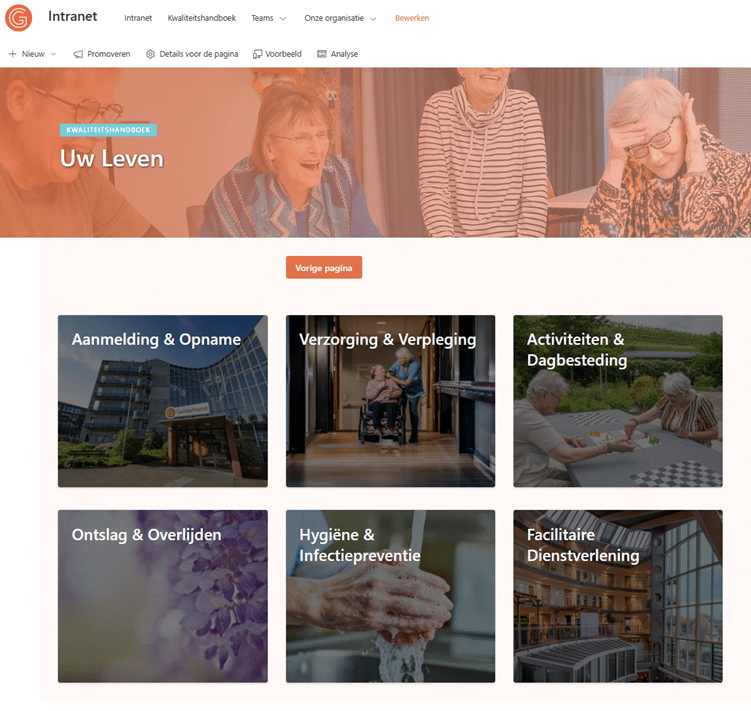 De zorginstelling beschikt nu over een toegankelijke, overzichtelijke digitale omgeving waar medewerkers eenvoudig nieuws, collega’s en protocollen vinden.  Dankzij de automatisering in Power Automate verloopt het beheer van kwaliteitsdocumenten soepel, gestructureerd en foutloos.